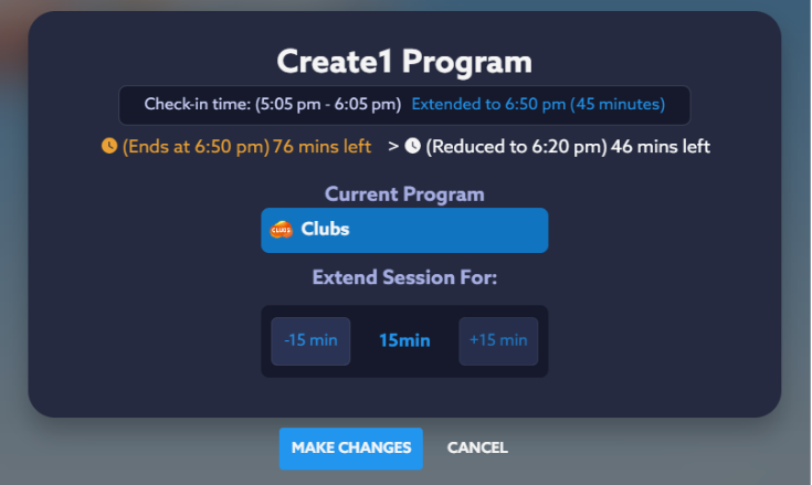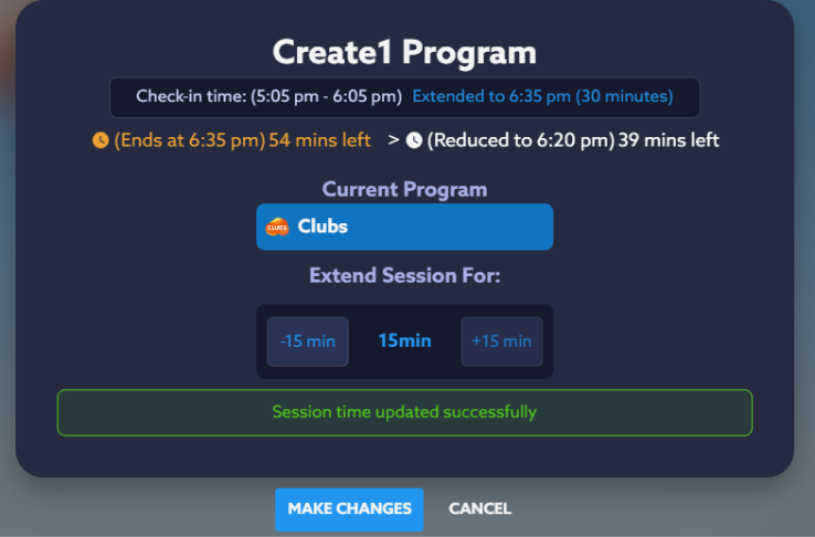 3. Click on “Make Changes” to reduce the session time. Once successful, you’ll see a green notification on the footer of the Session Extension screen.
