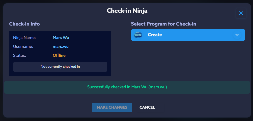 6. When the Check-in is successful, you'll see a similar notification on the "Check-in Ninja" screen.
